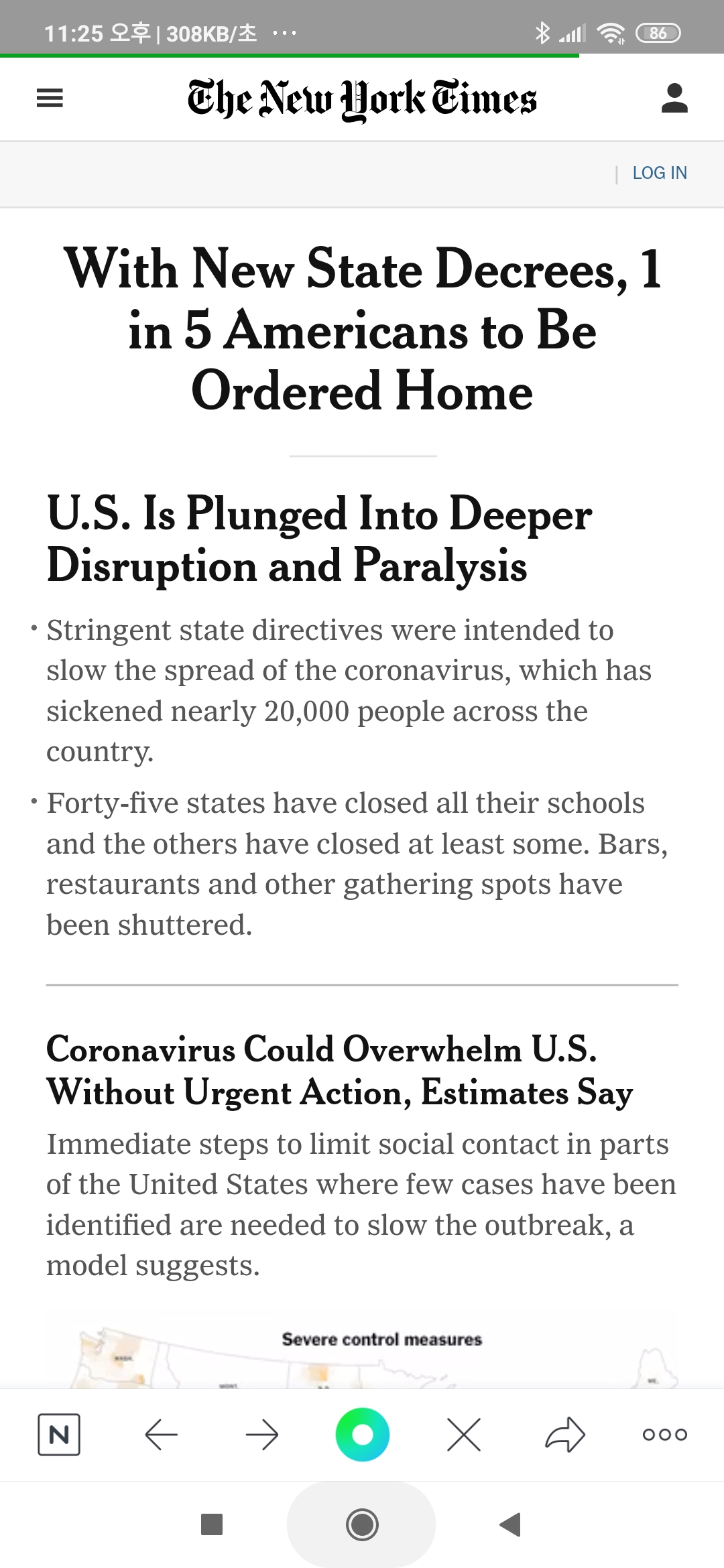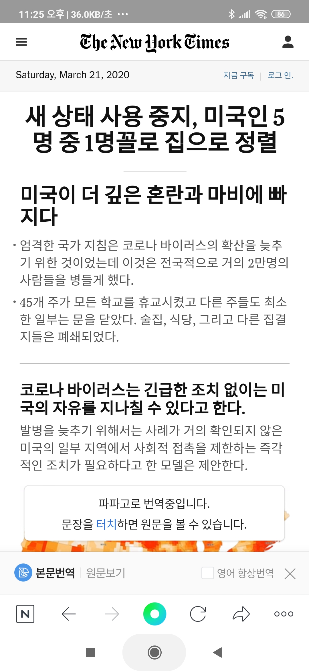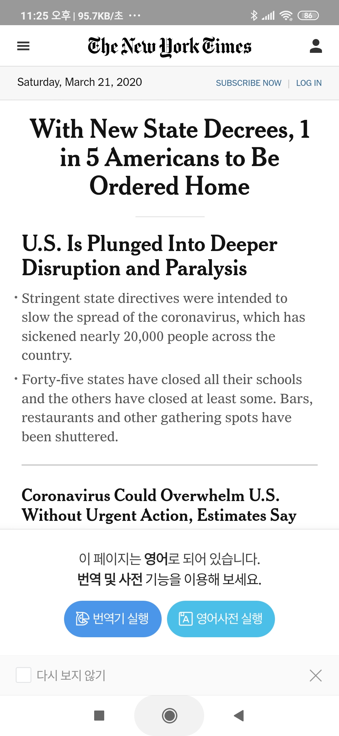 뉴욕타임즈 사이트를 스마트폰으로 접속하니
