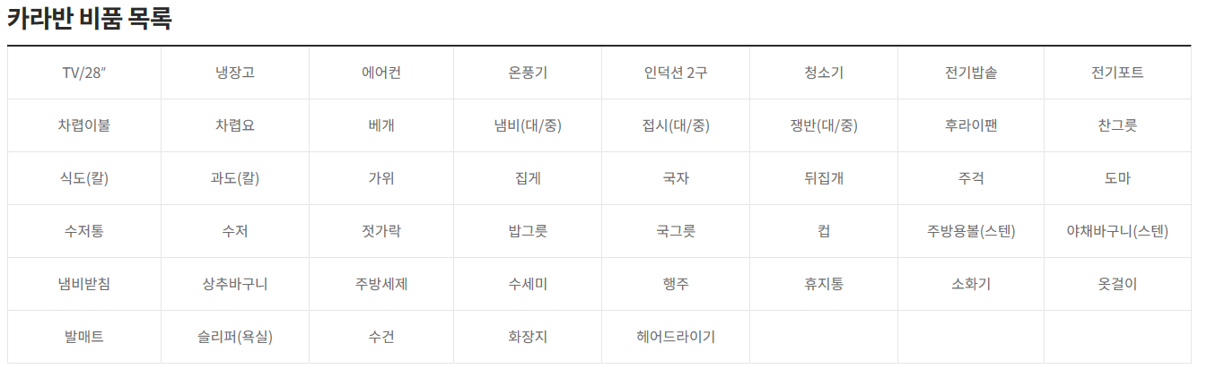 비품목록인데... 먹을 것 외에