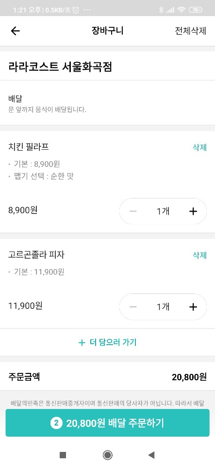 외출을 할 수 없으니 아쉽지만 배달 음식으로 만족