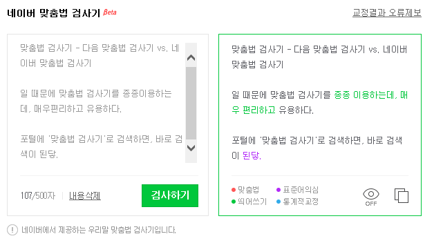 맞춤법 검사기 - 다음 맞춤법 검사기 vs. 네이버 맞춤법 검사기