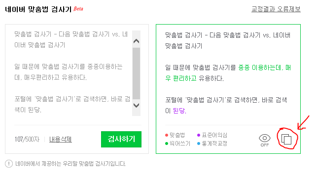 동일한 문장을 검사하고, 틀린 곳을 확인하고, 복사하는 일련의 과정이 다음이 훨씬 수월할 뿐 아니라