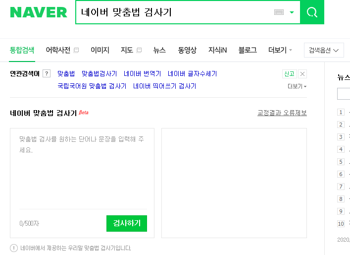 포털에 '맞춤법 검사기'로 검색하면, 바로 검색이 된다.