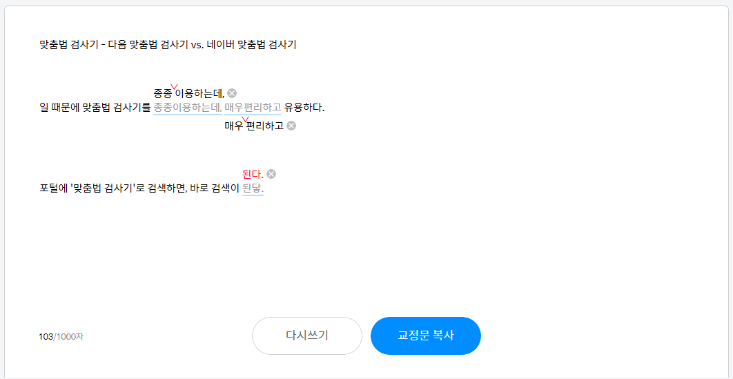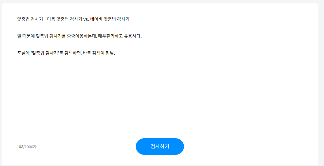 결과 면에서도 다음 맞춤법 검사기가 훨씬 정교하다.