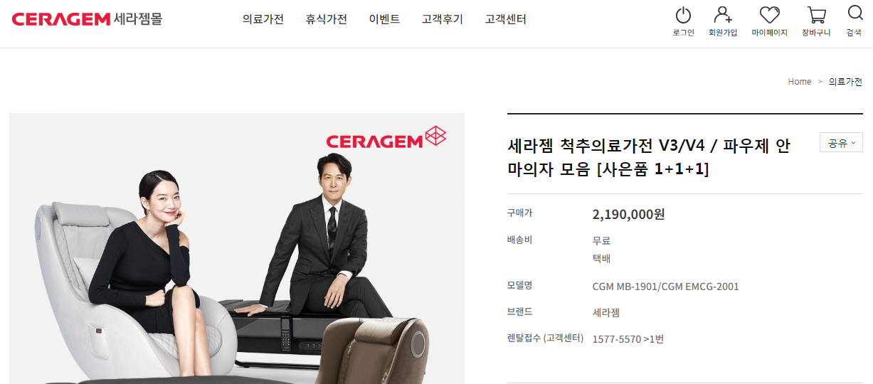 척추의료가전 V3/V4의 경우는 세라젬몰에서 3백만원대에 판매중이네요.