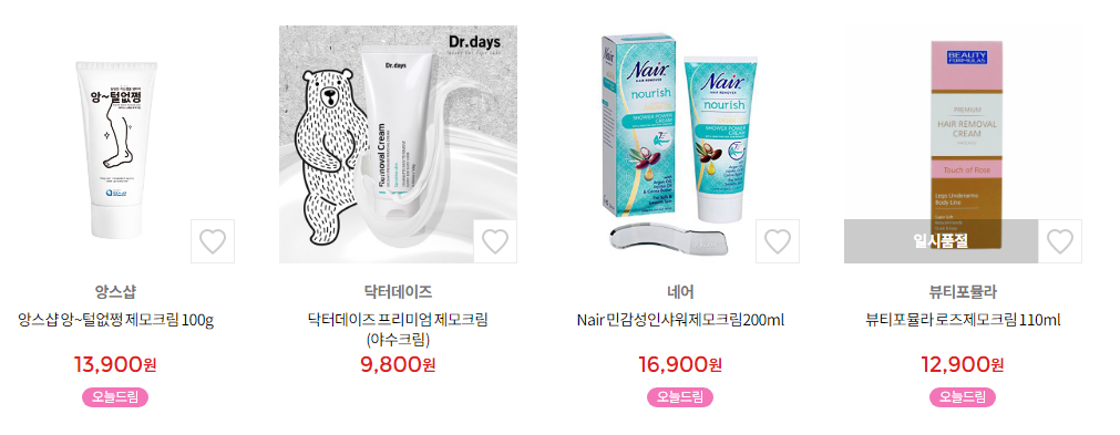 올리브 영에서 제모 크림이 많이 판매되고 있죠.