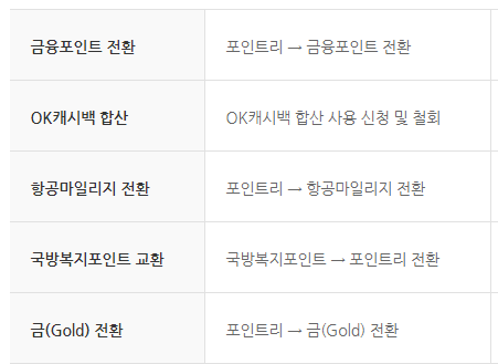 현금 캐시백은 일정 요건이 필요한데요 3만점 이상 보유 시 (신용카드, 일부 기업카드), 1만점 이상 보유 시 (포인트리 체크카드)에 사용 가능합니다.