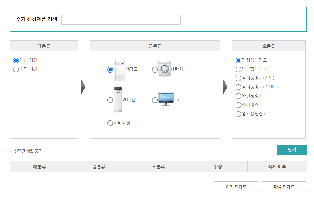3단계에서 수거 신정제품을 지정할 수 있는데요.