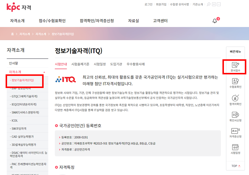 2) 자격 소개 탭 > 정보기술자격(ITQ)을 클릭