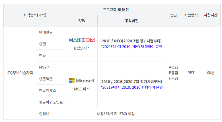 ITQ(정보기술자격시험) 시험일정, 합격 기준, 응시료, 시험시간 ITQ(정보기술자격시험) 시험일정, 합격 기준, 응시료, 시험시간, 원서접수 방법