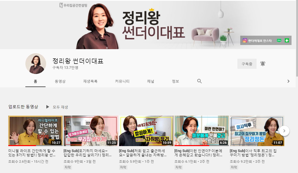 이지영 대표는 유튜브에서 먼저 유명하신 분이었다는데 저는 신박한 정리로 알게 되어 거꾸로 유튜브를 하나 하나 살펴보는 중입니다.