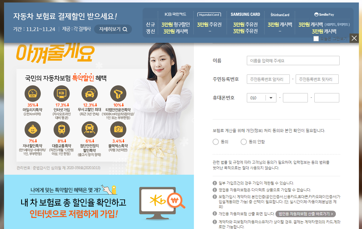 2020/11/05 - 자동차보험 보험료 가입 후기(제휴할인카드 활용, 퍼마일 자동차보험)