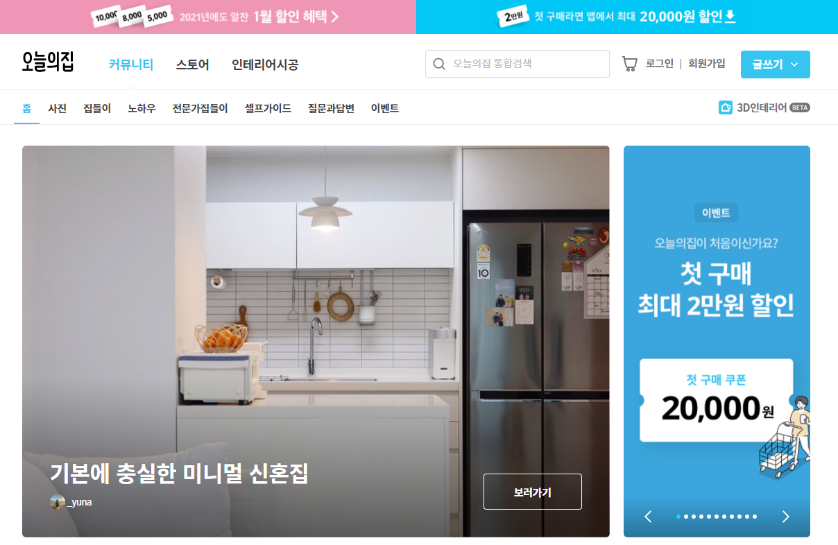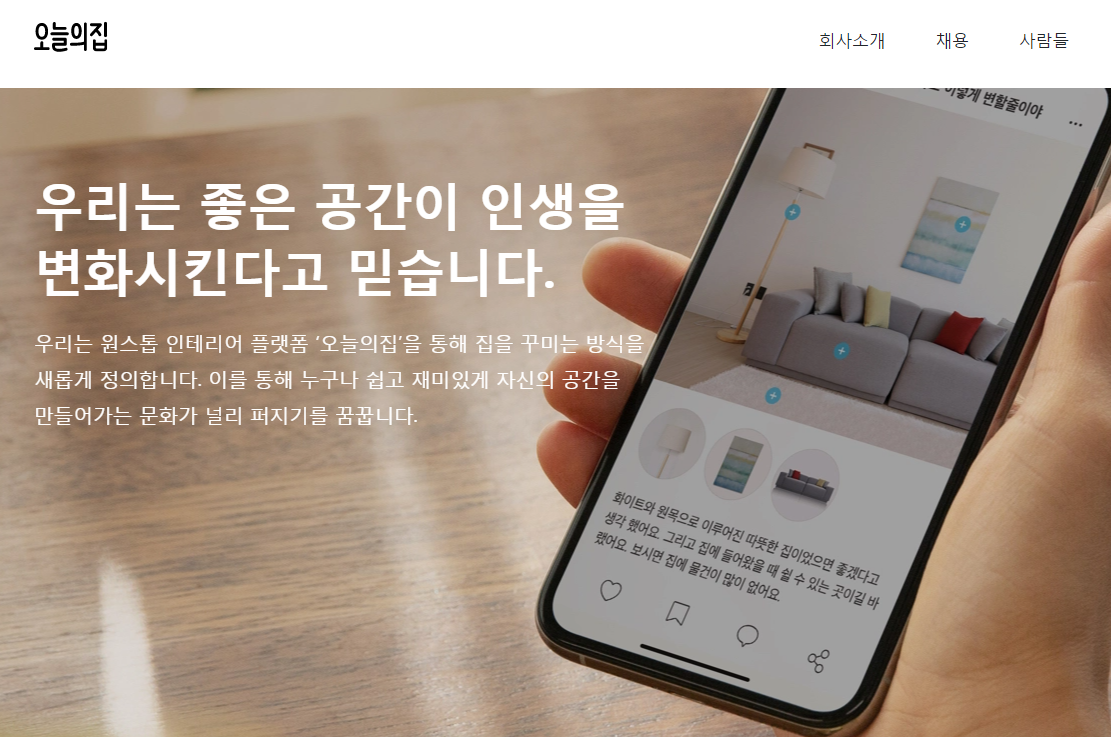 오늘의집은 대한민국의 인테리어 플랫폼으로 버킷플레이스에서 운영하고 있습니다.