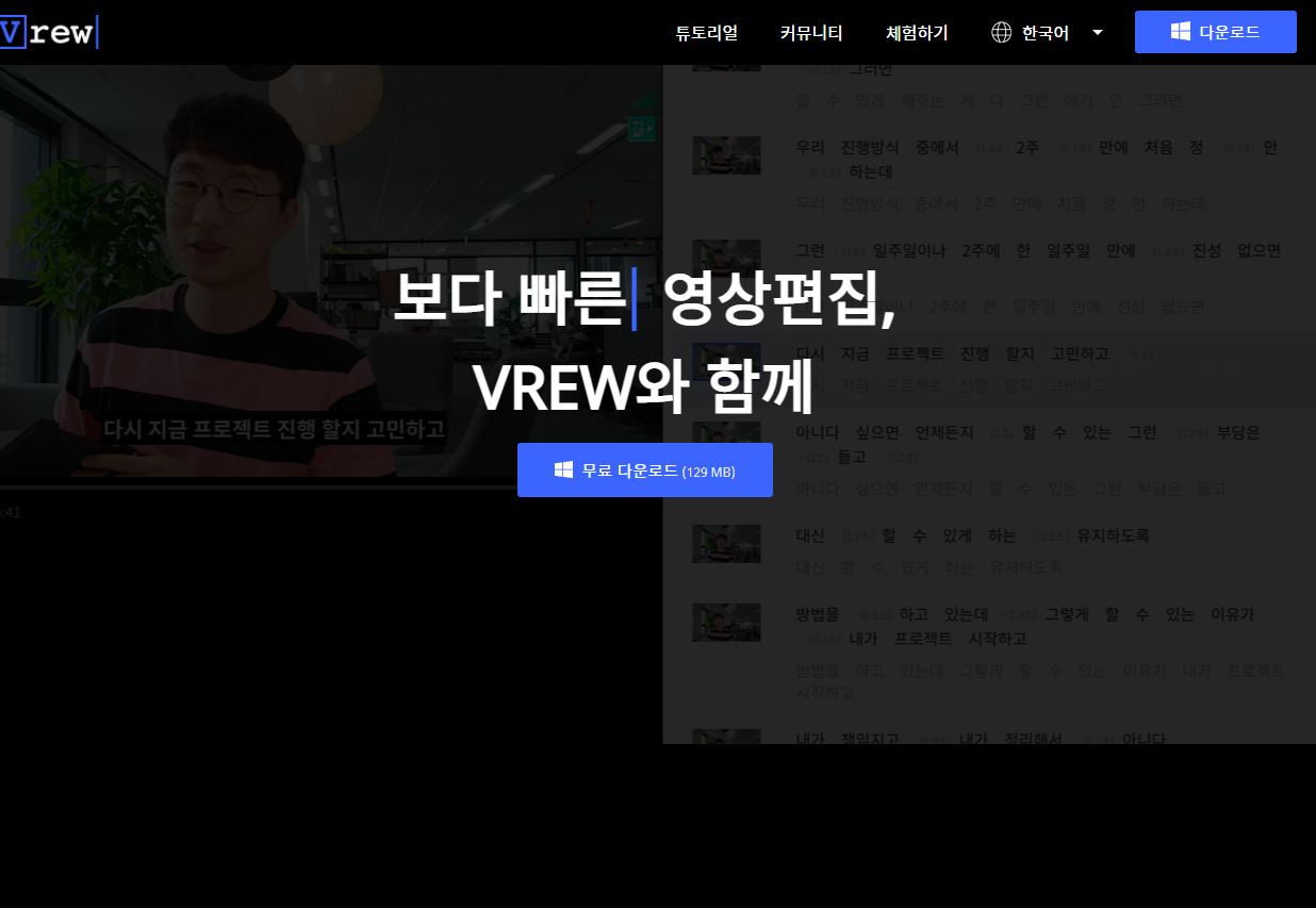 Vrew는 인공지능을 활용한 영상 편집 프로그램입니다. 신개념 영상 편집을 지금 경험해보세요.