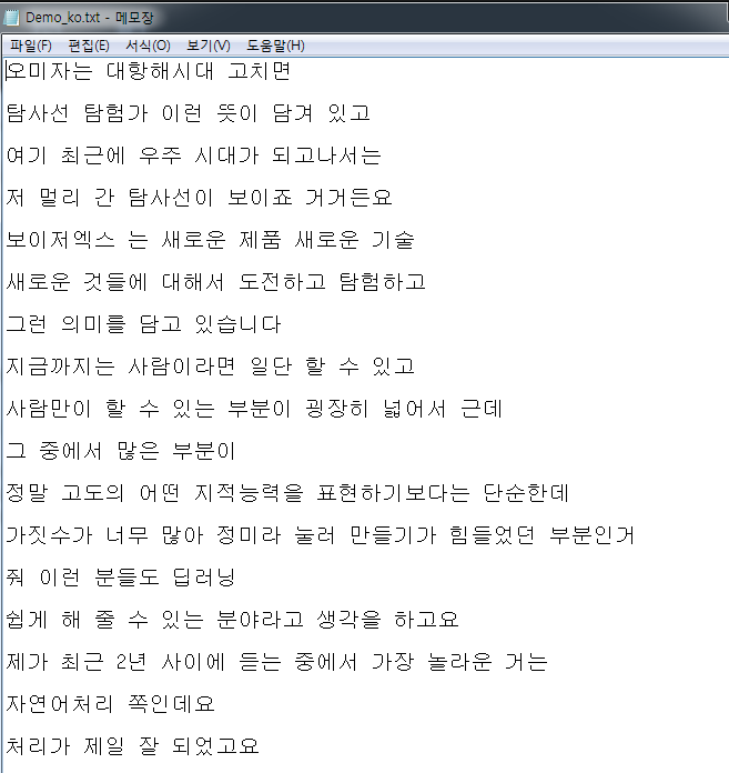 발음이 좋은 목소리는 상당히 정확하게 텍스트 파일로 변환이 되고 보통의 경우 80% 내외인 것 같습니다.