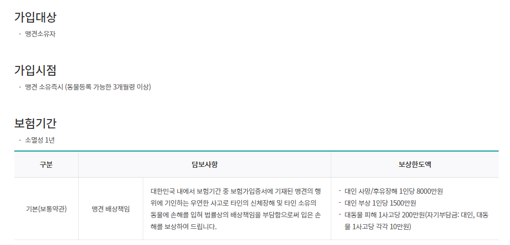 맹견보험은 가입비용 마리당 연 1만5000원입니다.