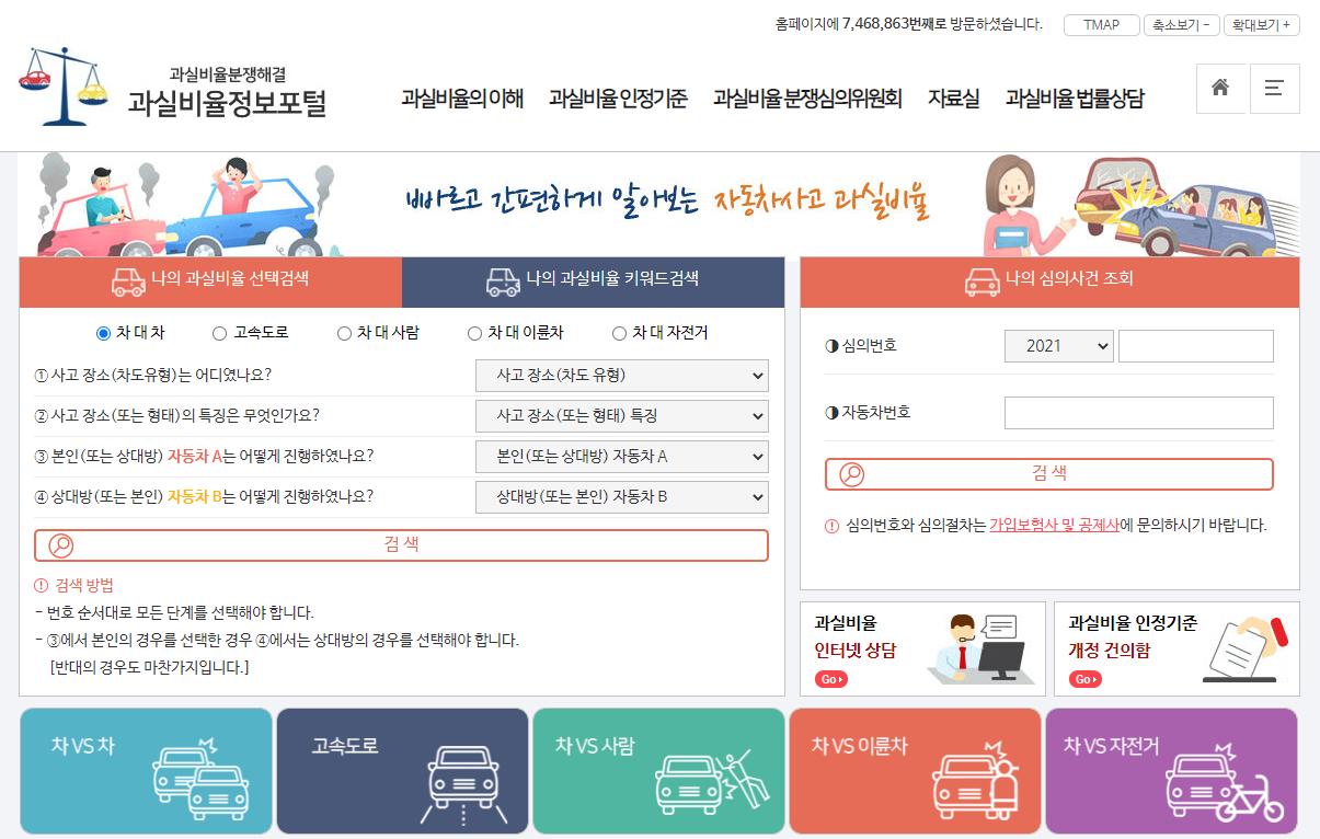 이에 과실비율정보포털에서는 과실비율과 관련된 다양한 정보를 제공하고 있습니다.