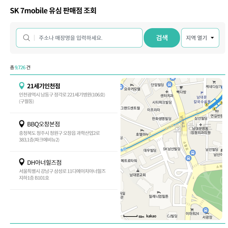 다음과 같이 홈페이지에서 판매점 조회가 가능합니다.