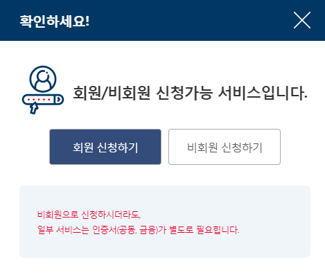 [회원 신청하기]로 들어가서 인증과정을 진행합니다.