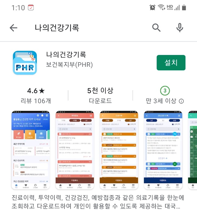다운로드 페이지에 소개된 내용을 살펴보겠습니다. (*출처 : play.google.com/store/apps/details?id=or.kr.khis.phr)