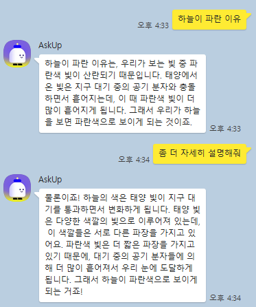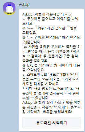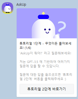Askup (아숙업)은 주식회사 업스테이지에서 개발한 카카오톡 채널입니다.